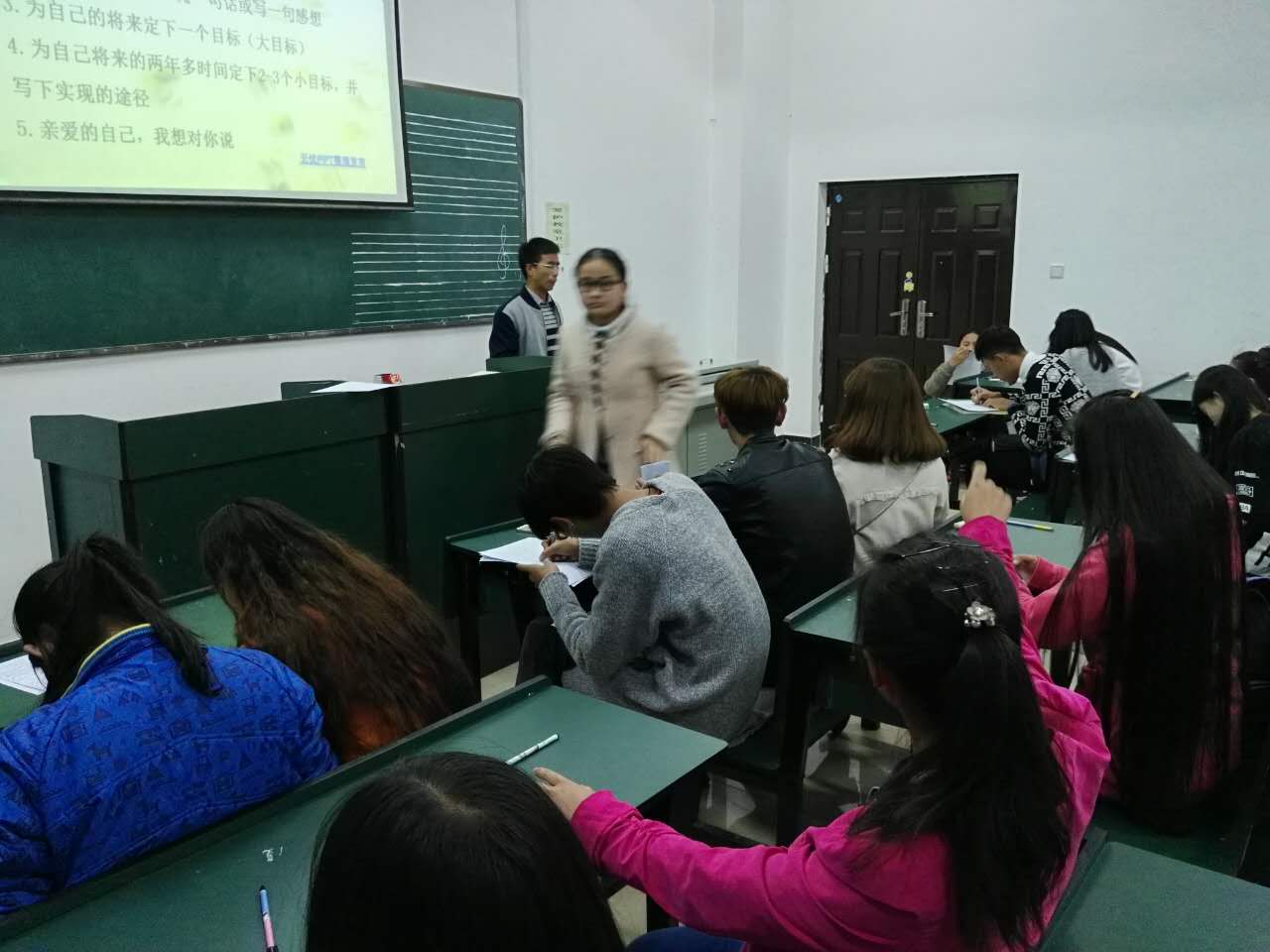 班会上,班主任积极动员大家为各种考试做好准备,并让优秀学生分享了自己的学习经验和考试经验,目的是引起大家对大学考试的重视,以便顺利通过各种考试。学生通过绘制自己的生命成长曲线,回顾自己的过去,感受自己的现在,展望自己的未来,然后把自己的这些感受绘制成自己的成长曲线,写下自己想说的话。为自己定下长远目标和短期目标,并为自己的短期目标写下详细的实施计划。通过这些,可以让学生系统的梳理自己,思考自己成长,更好的规划自己的大学学习生活。在绘制过程中,大家积极踊跃,认真思考,认真写下自己成长经历和愿景。